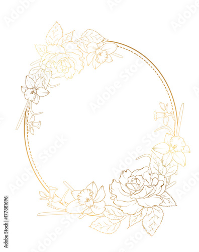 Oval Border Frame Decorated With Rose Peony Daffodil