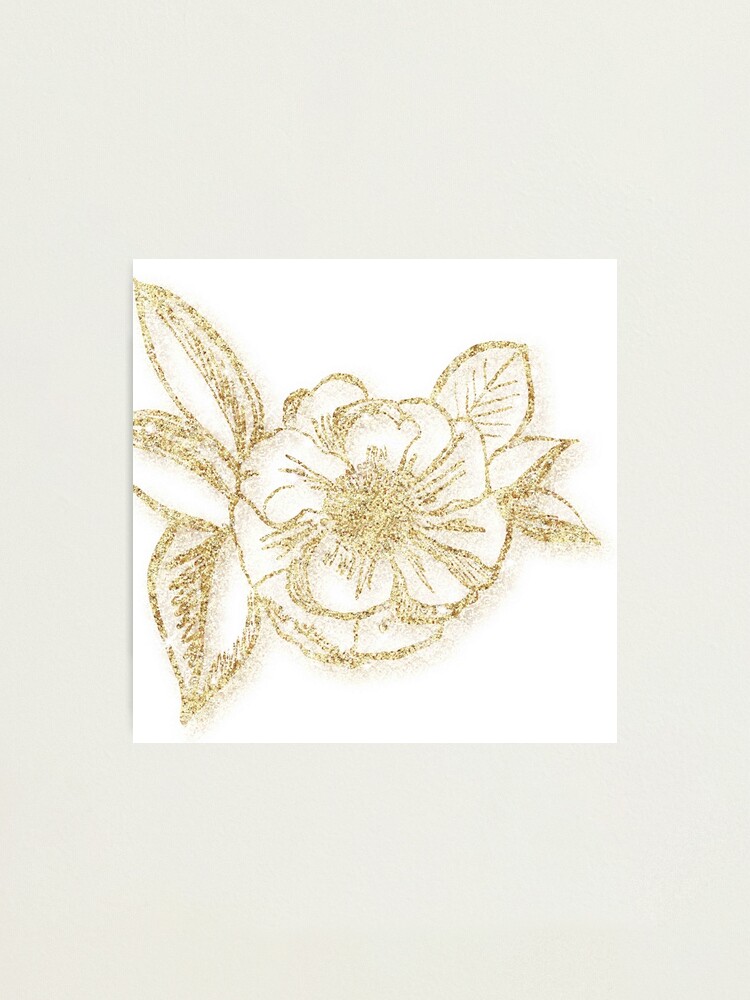 Glitter Glam Gold Flower Floral Design On White Background Trendy Modern Chic Elegant Photographic Print