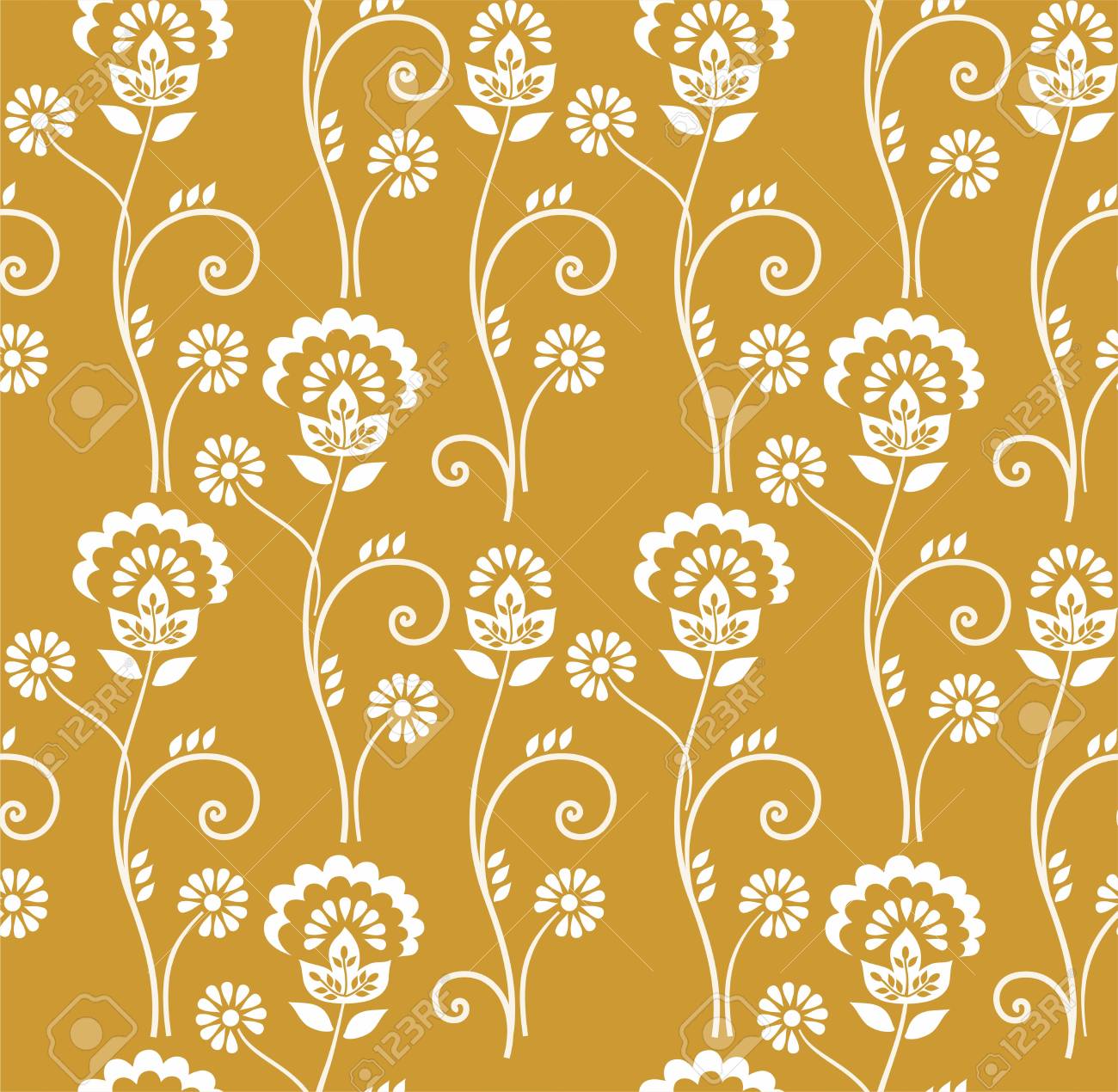 Floral Pattern Seamless White Flowers On A Gold Background