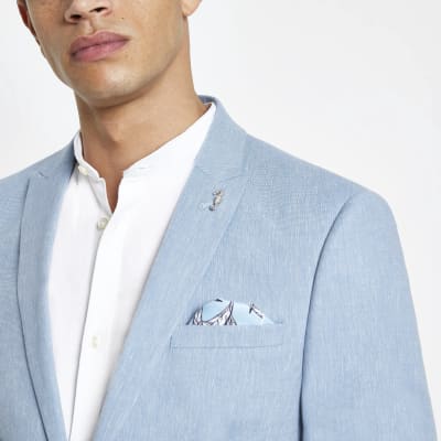 Veste De Costume Skinny En Lin Bleu Clair Bleu Homme River Island