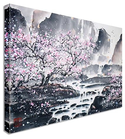 Landscape Cherry Blossoms Canvas Paintings Japan Flowers Mountain