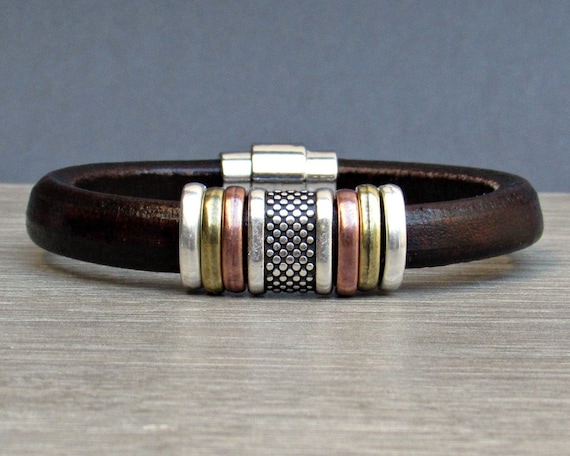 New Design Men S Leather Bracelet Silver Leather Mens Etsy