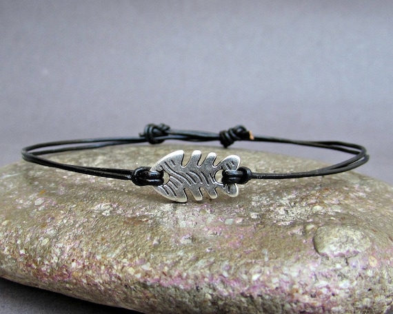 New Design Tiny Fish Men S Bracelet Silver Fish Leather Etsy