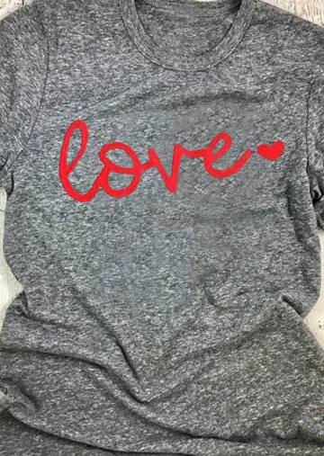 2018 Short Sleeve T Shirt Women Love Letter Print t Shirt Brief Casual Tees Dark Grey O Neck Girls Simple Valentines Tops Tees