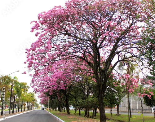 Flowering Tree Green Leaves And Branches With Pink Flowers