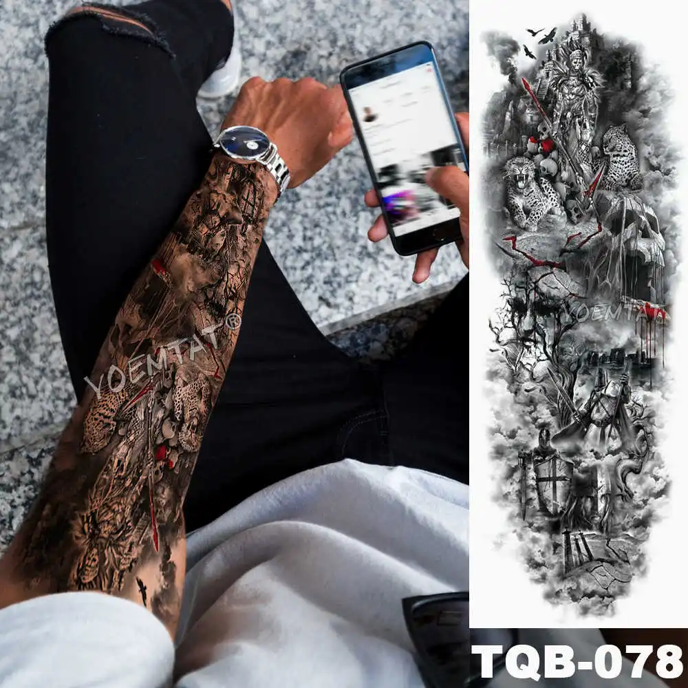 Us 234 5 Offlarge Arm Sleeve Tattoo Sketch Lion Tiger Waterproof Temporary Tattoo Sticker Crow Warrior Soldier Men Full Skull Totem Tattoo In