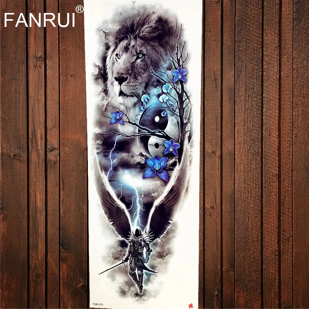 Worrior Lion King Large 825 Half Sleeve Arm Tattoo Temporary Body Tattoos For Women