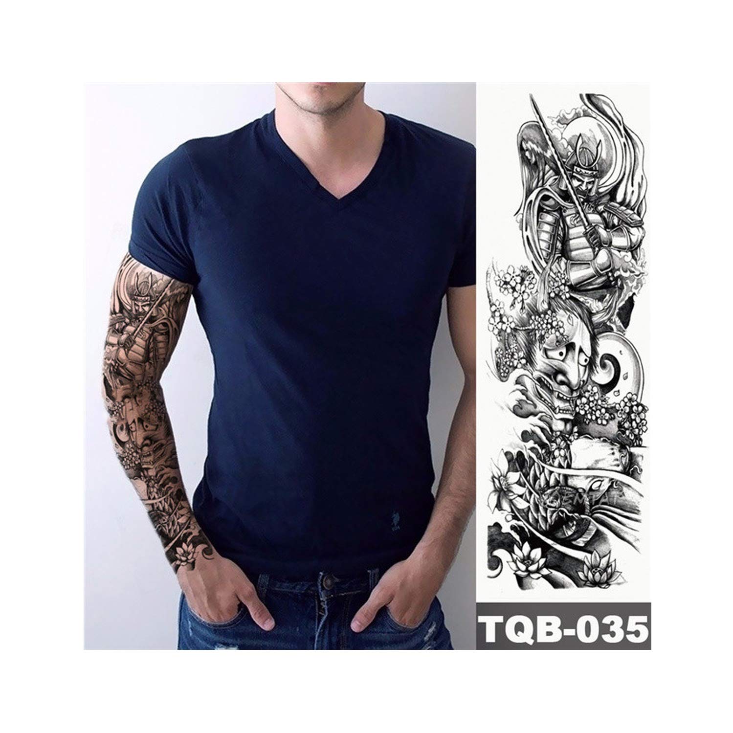 Men Temporary Tattoo Full Arm Sleeve Temporary Lion Tattoos Large King Tattoo Long Sleeve Sexy Fake Tatoo Boys Waterproof Black
