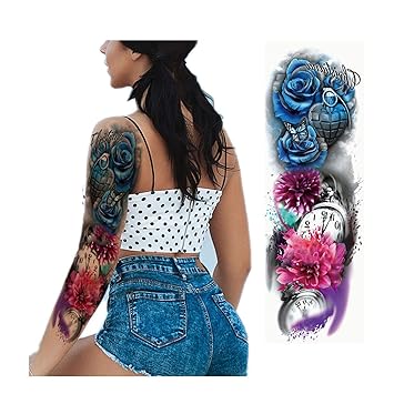 Details About Angel Lion Clouds Flowers Roses Temporary Tattoo Arm Sleeve Large Realistic Uk