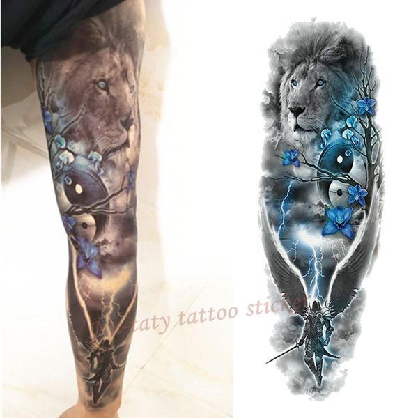 Us 187 Large Arm Sleeve Tattoo Lion Tiger Waterproof Temporary Tattoo Sticker Flame Warrior Men Full Skull Flower Tatoo Body Art Women In Temporary